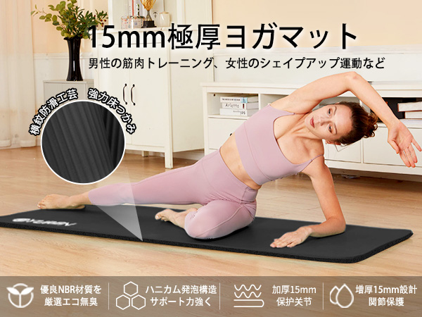YUREN ヨガマット 90cm×190cm 厚さ15mm 黒 AmazonYUREN ヨガマット TPE 10mm 厚め 幅広 90cm x195cm エクササイズ トレーニング マット yoga mat 滑り止め 耐久性 無害 収納バッグ 収納バンド付きYURENマットYUREN ヨガマット。