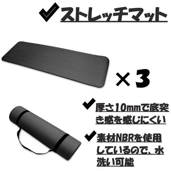3枚 ヨガマット 黒 ストレッチ マット 10mm トレーニング エクササイズ 直送品。