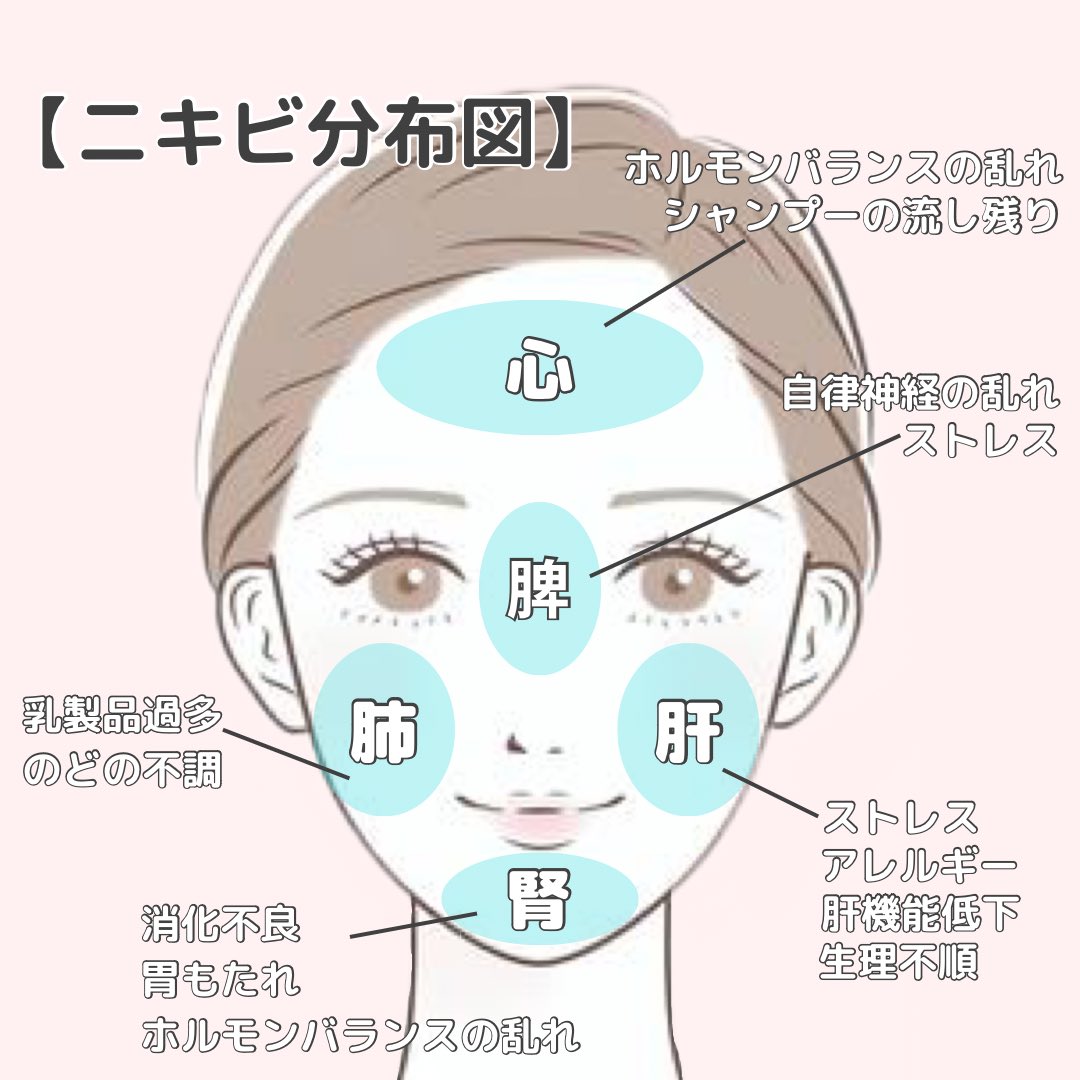 ニキビの原因が分かる◎ニキビマップ!\大人ニキビでお悩みの方ニキビには、外的要因だけでなく、体内環境が影響される事も 「同じ場所ばかりにニキビができる 」「今までできなかった所にニキビができた 」 という方は、食事や生活習慣の見直しをしてみま。
