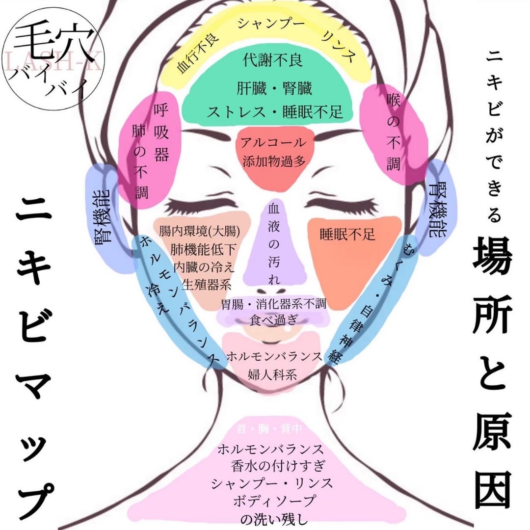 ニキビマップ 場所と原因群馬県伊勢崎市 まつげ・眉毛専門店 LASH-K ラッシュケー。