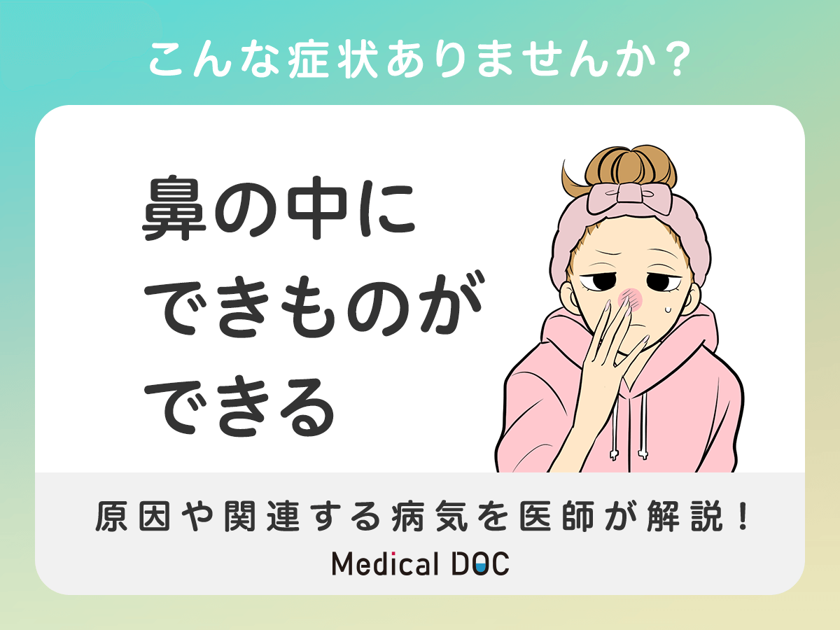 鼻の中にできものができるのは病気?気になる原因や対処法を徹底解説! 症状の原因・病気一覧・診療科 - メディカルドック。