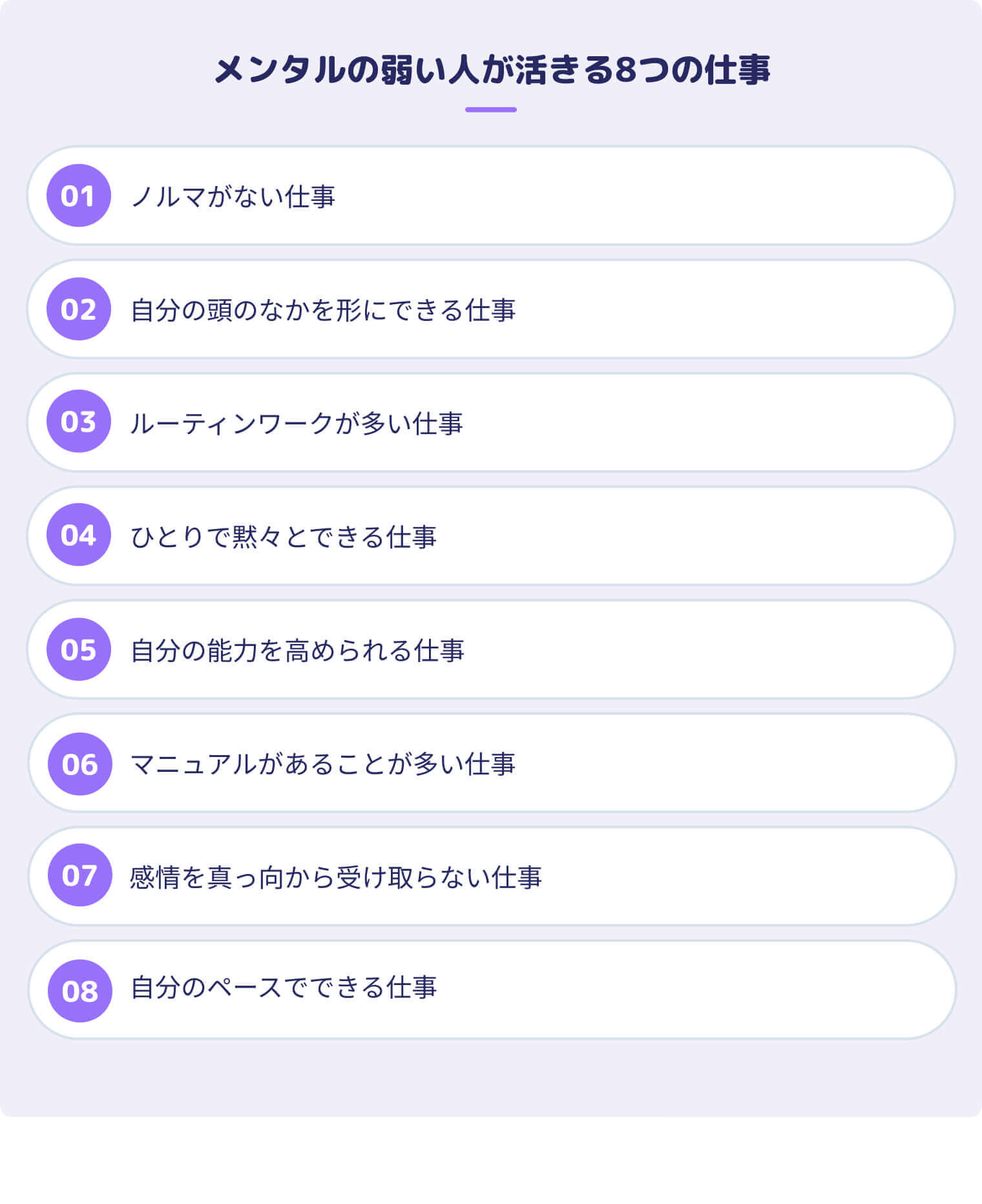 メンタルが弱い人に向く仕事12選!自分に適した仕事の探し方も解説JobQ ジョブキュー。