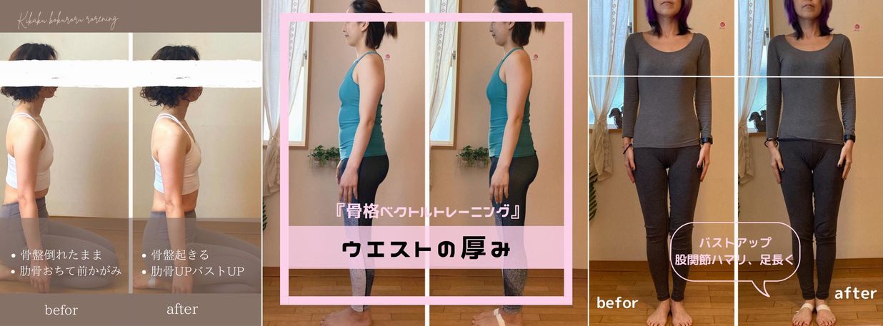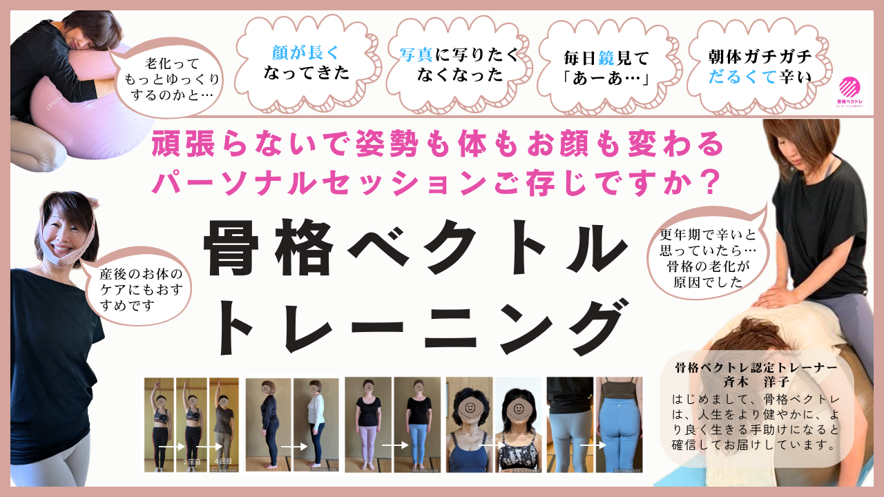 骨格ベクトレとは? 骨格ベクトルトレーニングのこと 自分の身体の基礎である 骨格 を 正しい位置に移動させます! 骨格が正しい位置に整うと・必然的に使うべき筋肉に働きかけられる ・歪みにより滞っていた老廃物が流れてスッキリ ・ヨガポーズやスポーツなど。