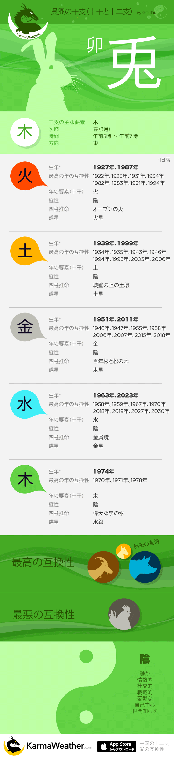 卯年 うさぎ年 生まれの性格や特徴や相性 年齢早見表付きmicane無料占い。