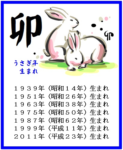 卯年 うさぎどし の性格干支別の意味・特徴・年齢・相性うらなえる無料占い・今日の運勢。
