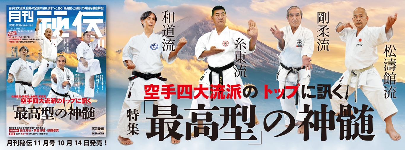 空手四大流派、白熱の全国大会&頂きへと至る「最高型・上級形」の神髄を徹底解析!月刊秘伝2025年11月号。