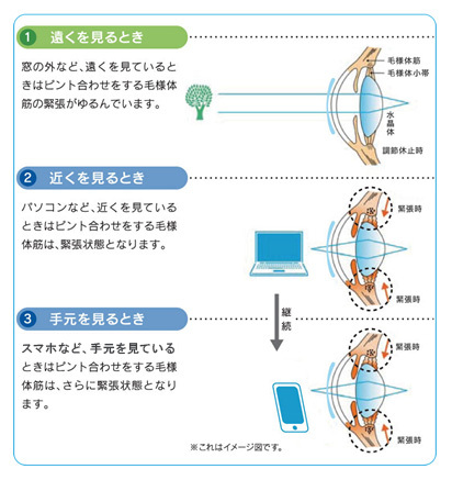 目の疲れ・眼精疲労のメカニズム眼精疲労の原因と対策エーザイ株式会社。