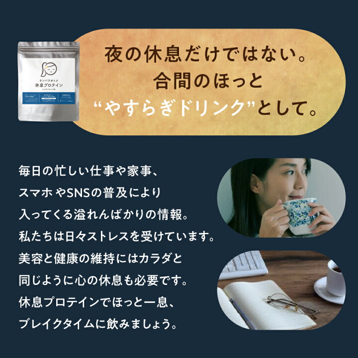 楽天市場 プロテイン タンパクオトメ 休息プロテイン全国送料無料夜専用プロテイン ソイプロテインとホエイプロテインのW配合。4つの休息サポート成分 グリシン、GABA、テアニン、トリプトファン 美容素材25種以上。癒し整う 睡眠 眠活 シェイカー : タマチャン。