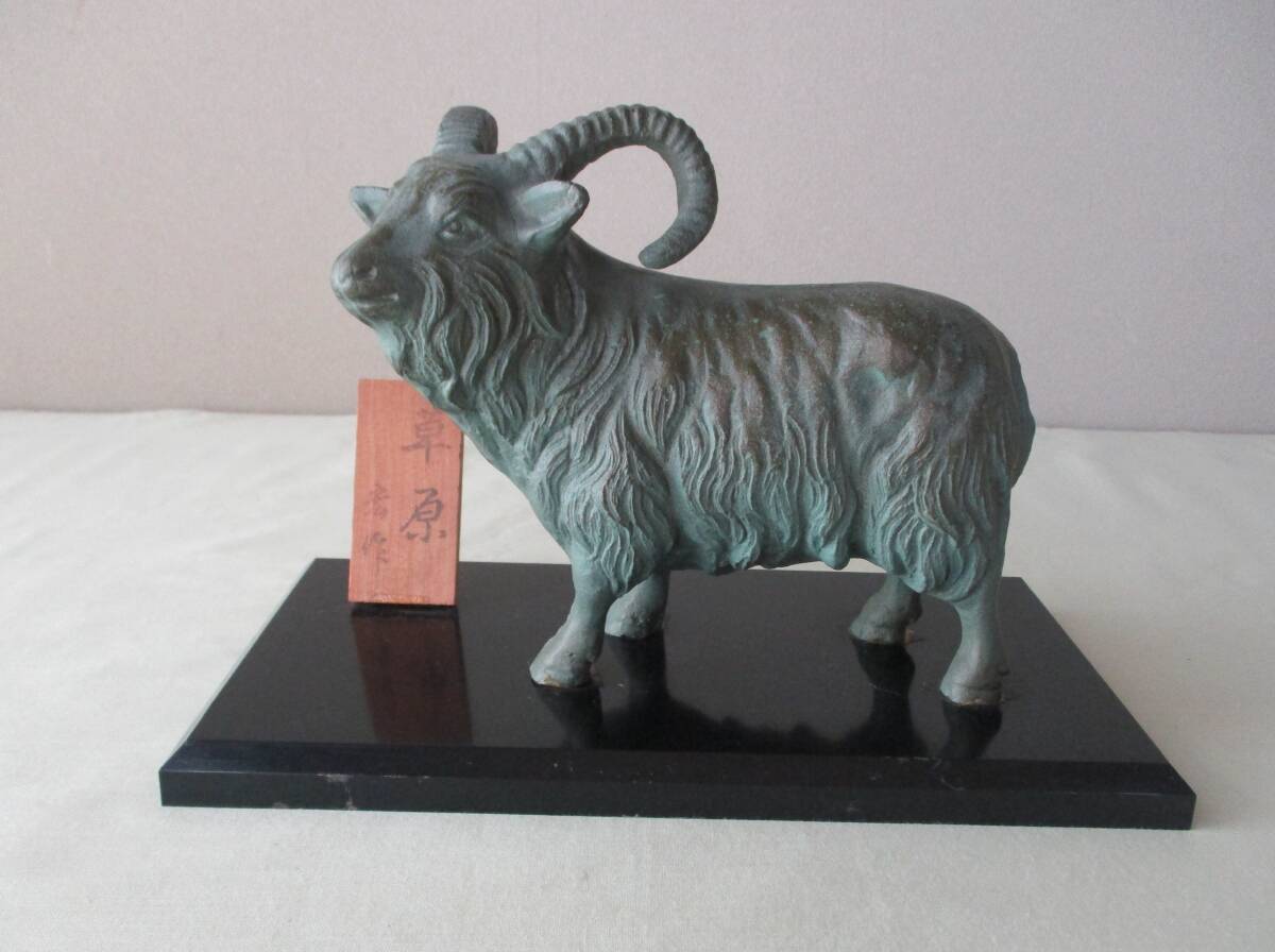 置き物 十二支 干支 未 羊 ひつじ 曙光 銅製 幅14.5×奥行6.5×高さ11cm 木製板付 桐箱 t35-08干支置物G十二支セット 大 木彫 台付。