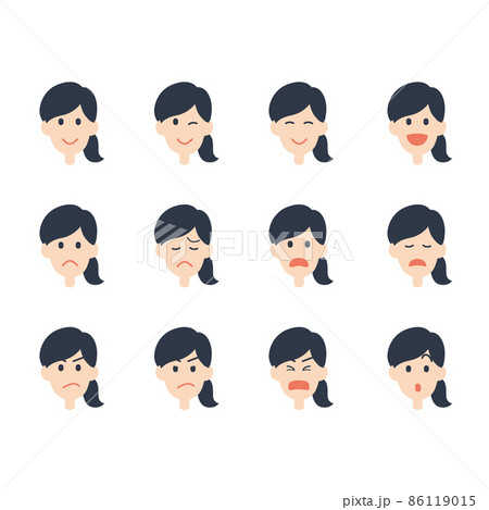 女性の顔_色々な表情のセットのイラスト素材86119015- PIXTA。