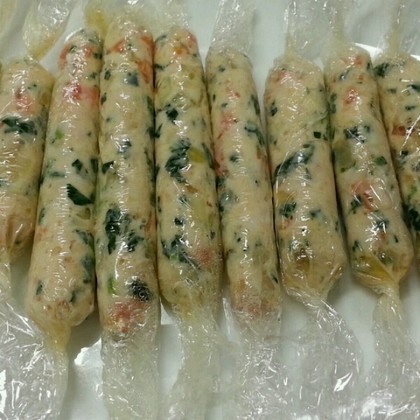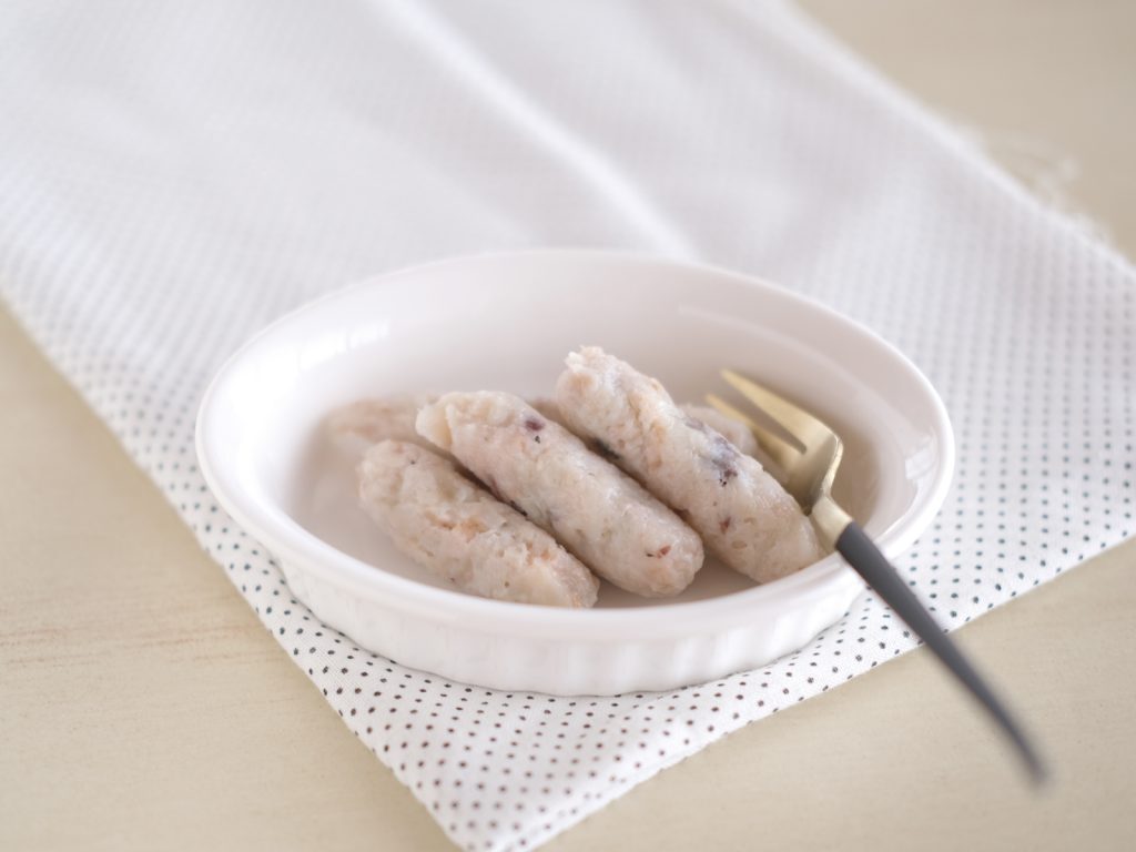魚の離乳食レシピ「フィッシュスタート」 ⑤ ぱくぱく期 タイと野菜のソーセージ。