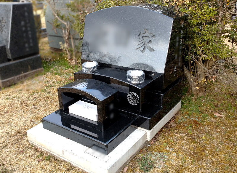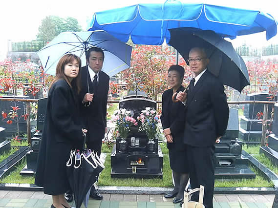 さいたま市想い出の里芝生墓地にて、インド産黒御影石MUのお墓を建立さいたま市の石の富士家。