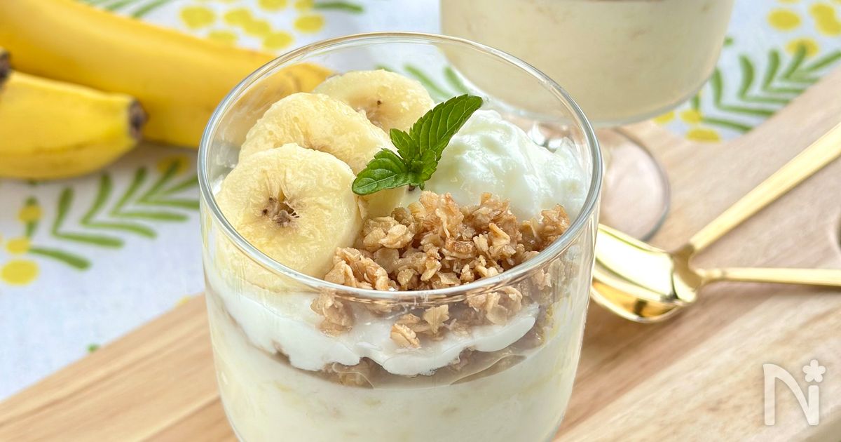 腸にうれしい♪バナナヨーグルトとオートミールのパフェ。