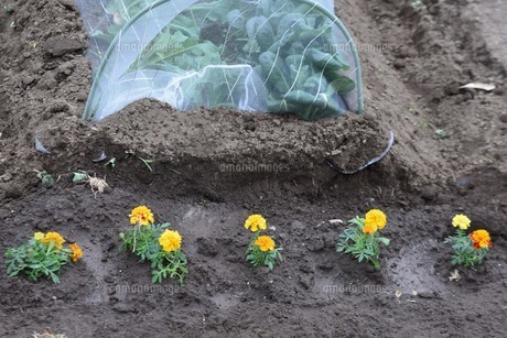 センチュウ退治のために畑に植えられたマリーゴールド 32089002631 の写真・イラスト素材アマナイメージズ。