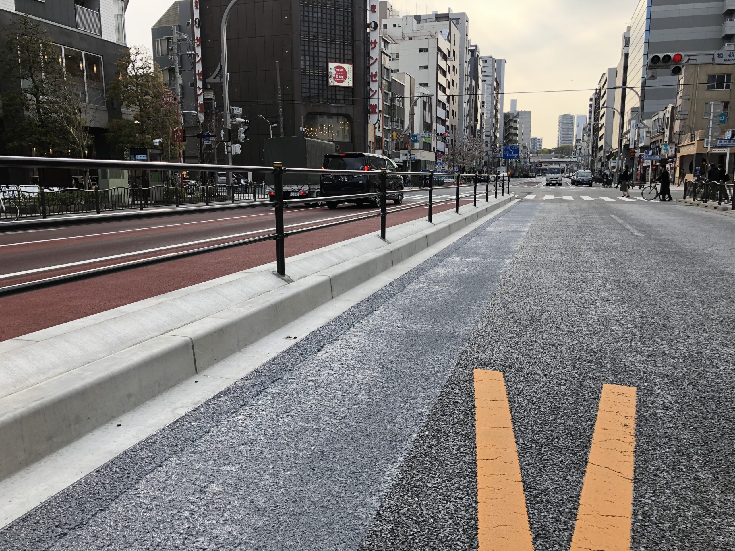 フラッシュ中央分離帯ブロック 東京都南多摩西部建設事務所日野工区。