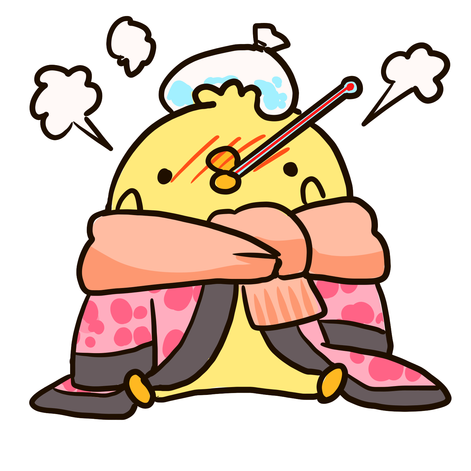 風邪を引いて厚着をしているひよこのイラストゆるくてかわいい無料イラスト・アイコン素材屋「ぴよたそ」。