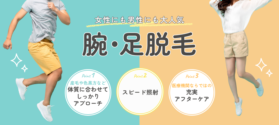 腕・足脱毛で思わず触りたくなる肌へ医療脱毛なら神奈川の美容皮膚科横浜マリアクリニック。