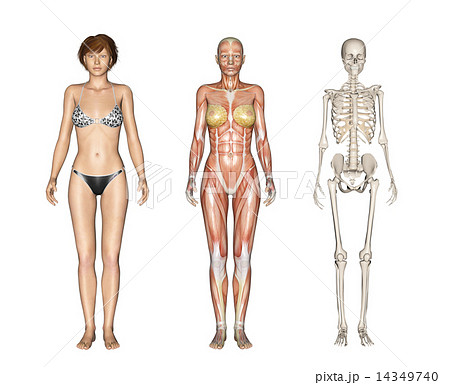 解剖モデル、女性の解剖図 - 人間の筋肉骨格解剖モデル塗装モデル人間の解剖学的筋肉骨エコルシェと皮膚モデル参照可能 筋肉と骨格模型が重なった女性の イラスト 日本人3Dモデルの全身正面のイラスト素材107640450- PIXTA。