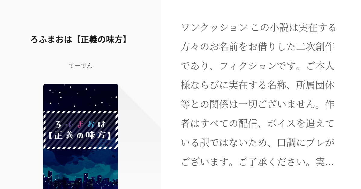 4 ろふまおは 正義の味方にじさんじの二次創作 - てーでんの小説シリーズ - pixiv。