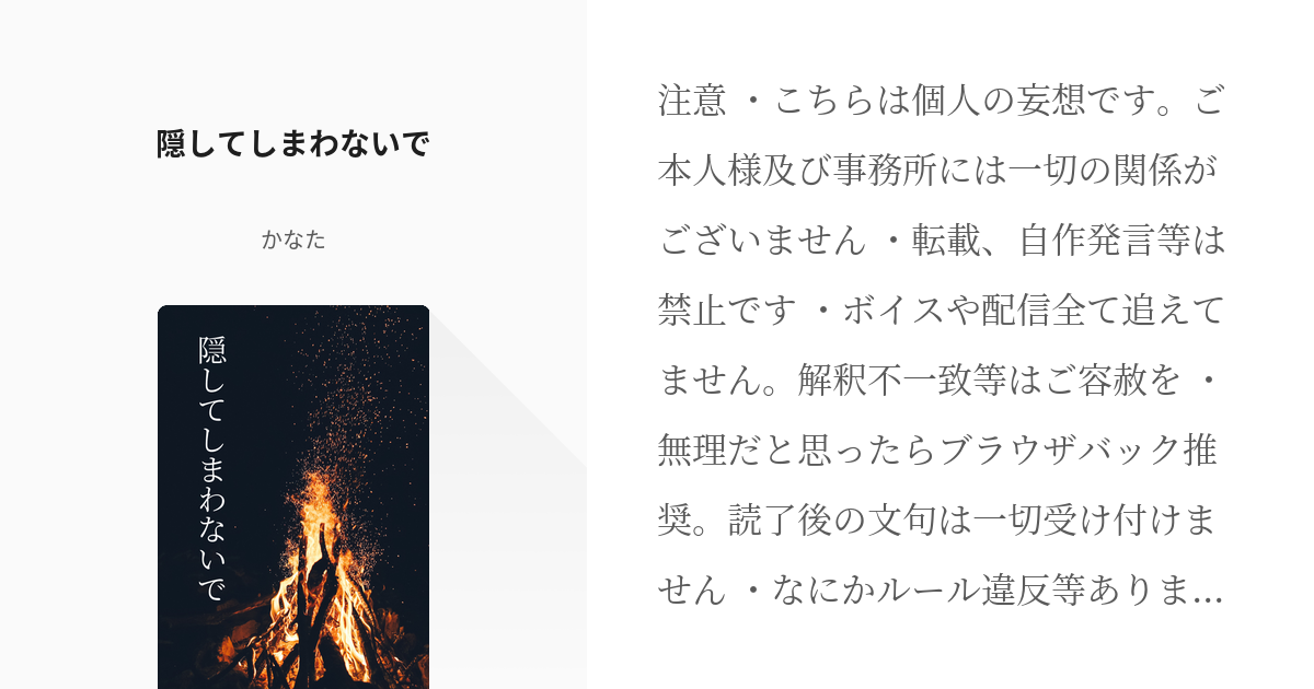加賀美ハヤト不破湊 隠してしまわないで - かなたの小説 - pixiv。