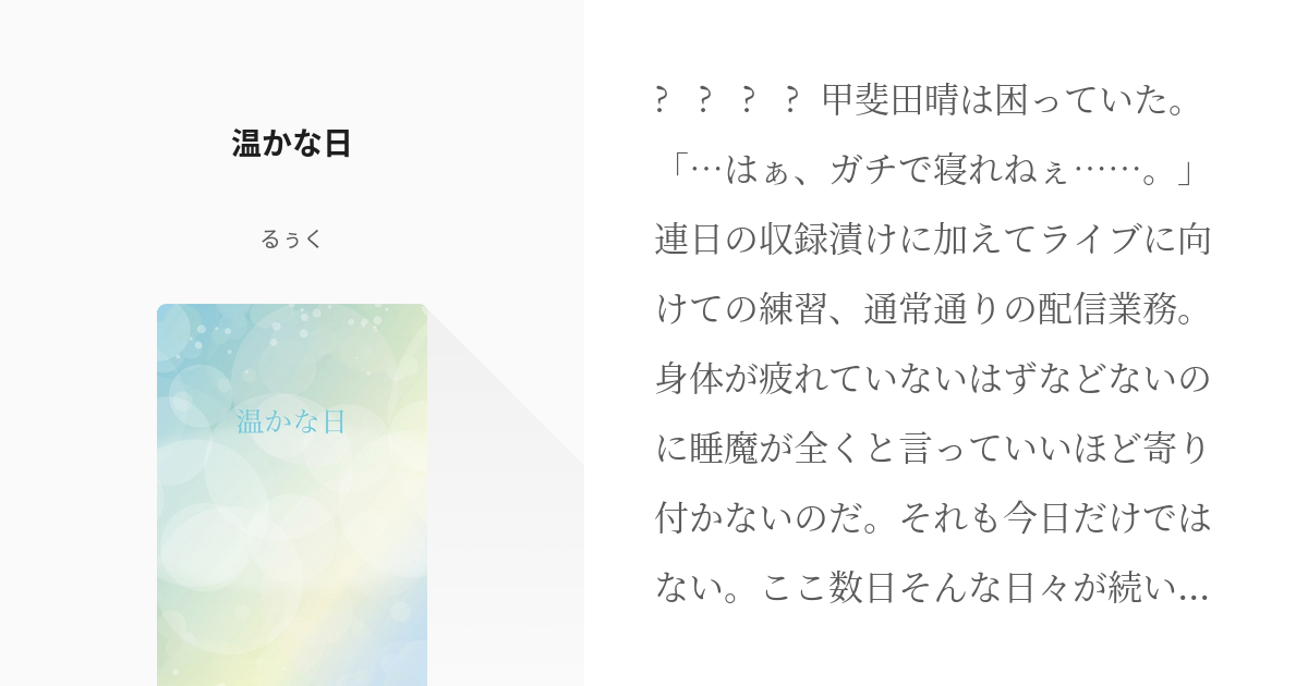 二次創作甲斐田晴 温かな日 - るぅくの小説 - pixiv。