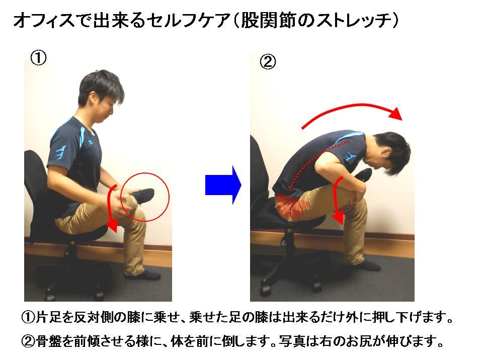 オフィスで出来る腰痛対策 股関節のストレッチふじの整体研究所。