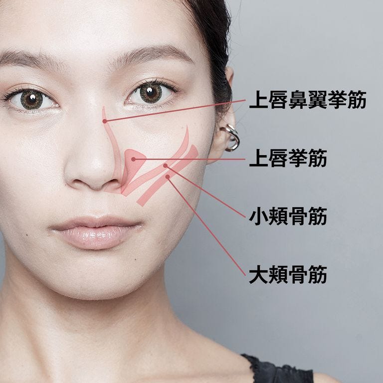 上唇挙筋付いてくると鼻を細める感覚が出てきます☺️鼻翼基部ほうれい線。