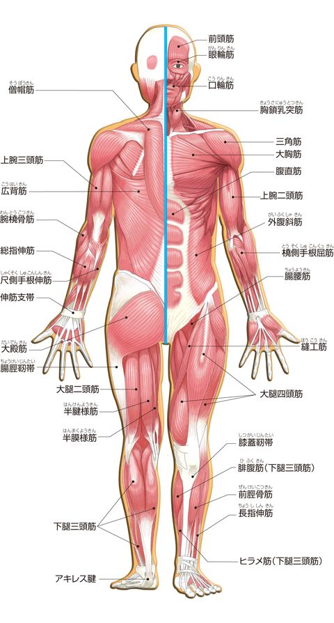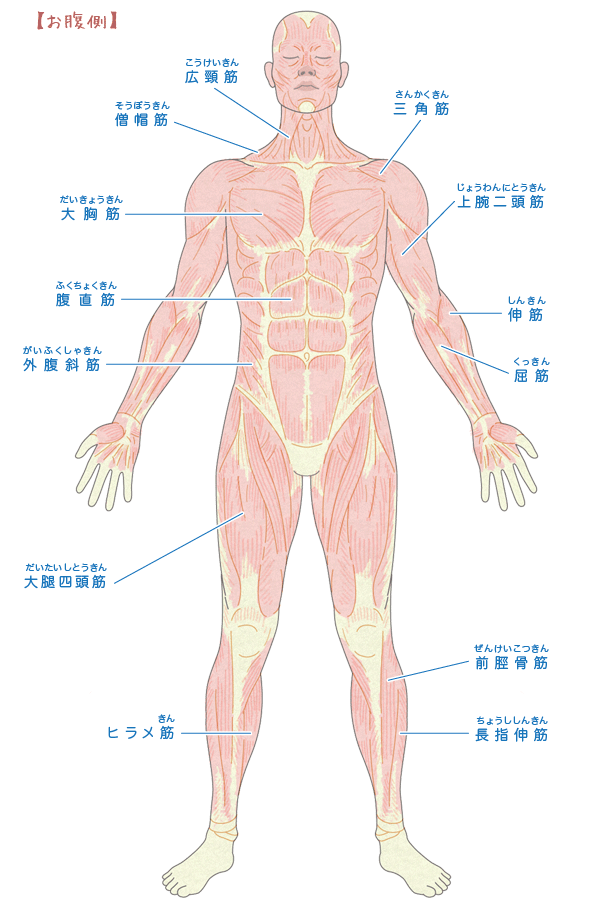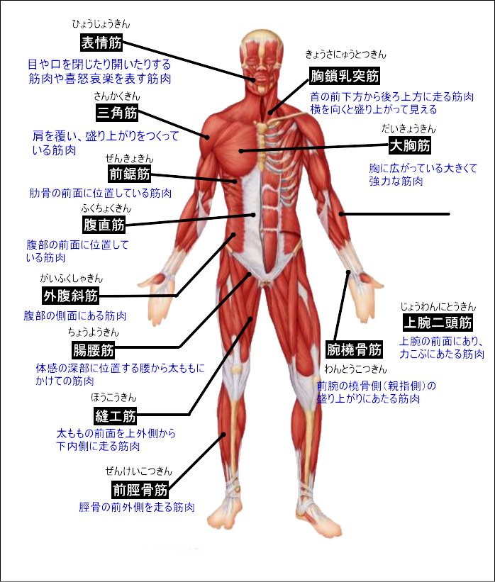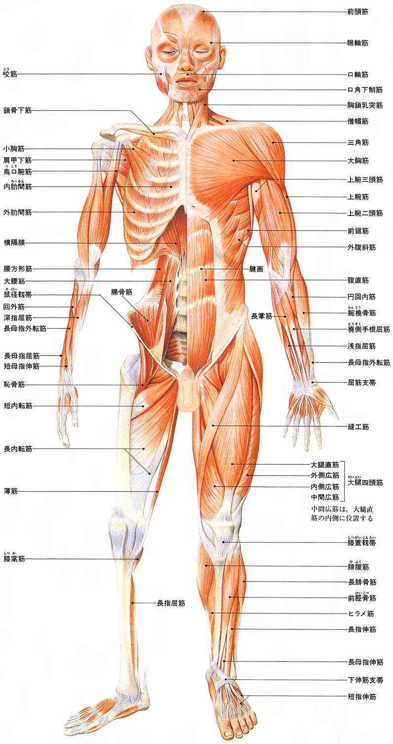 男性の全身正面の筋肉の解剖図と名称の図解イラストのイラスト素材107934506- PIXTA。