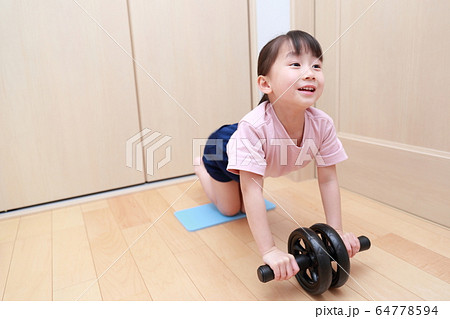 腹筋ローラーエクササイズ 運動 スポーツ 筋トレ 子供 女性 女の子 コピースペース 人物 の写真素材64778594- PIXTA。