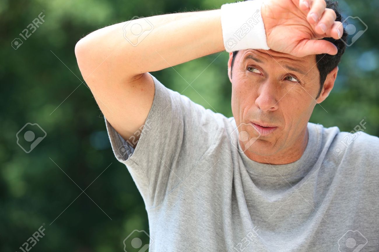手で汗を拭う男性 - 商用利用可能な写真素材・イラスト素材ならストックフォトの定額制ペイレスイメージズ。