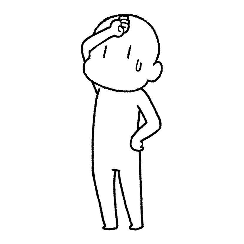 汗を手で拭う男性のイラストフリー、無料で使えるイラストカット.com。