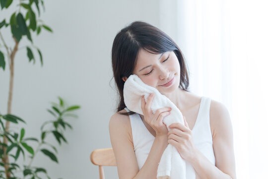 汗を拭う若い女性の写真素材78638616- PIXTA。