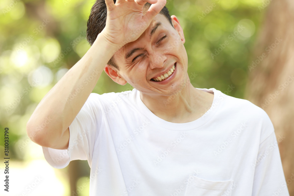手で汗を拭う男性 の Stock フォトAdobe Stock。