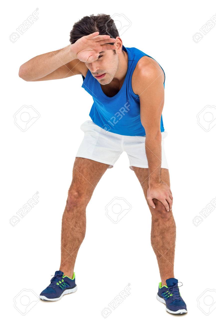 白い背景の上の手で彼の汗を拭く疲れている選手の写真素材・画像素材 Image 58470627。