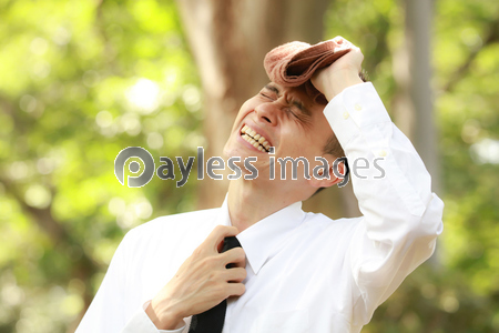 手で汗を拭う男性社員 - 商用利用可能な写真素材・イラスト素材ならストックフォトの定額制ペイレスイメージズ。