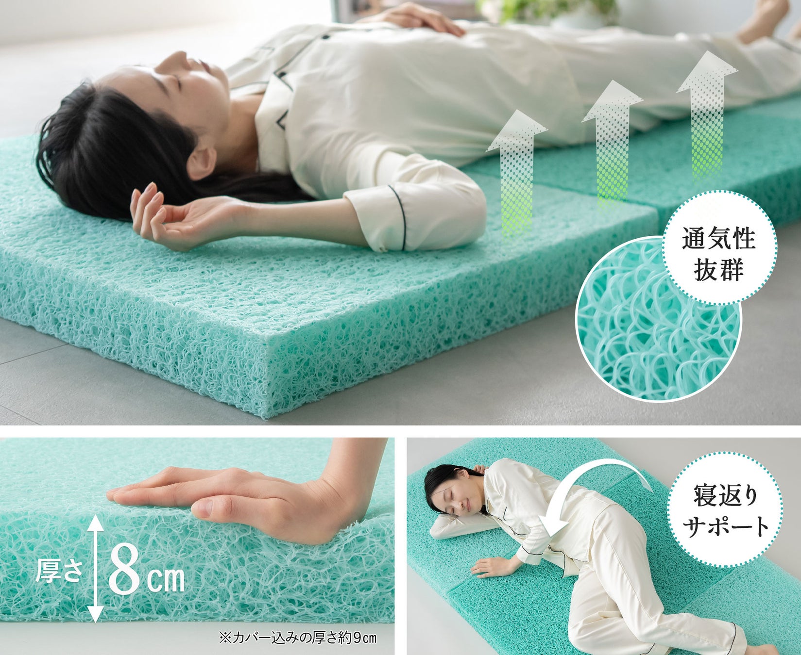 SD 3つ折 高反発 マットレス 5cm メッシュ ファイバー リバーシブル SD 3つ折 高反発マットレス。