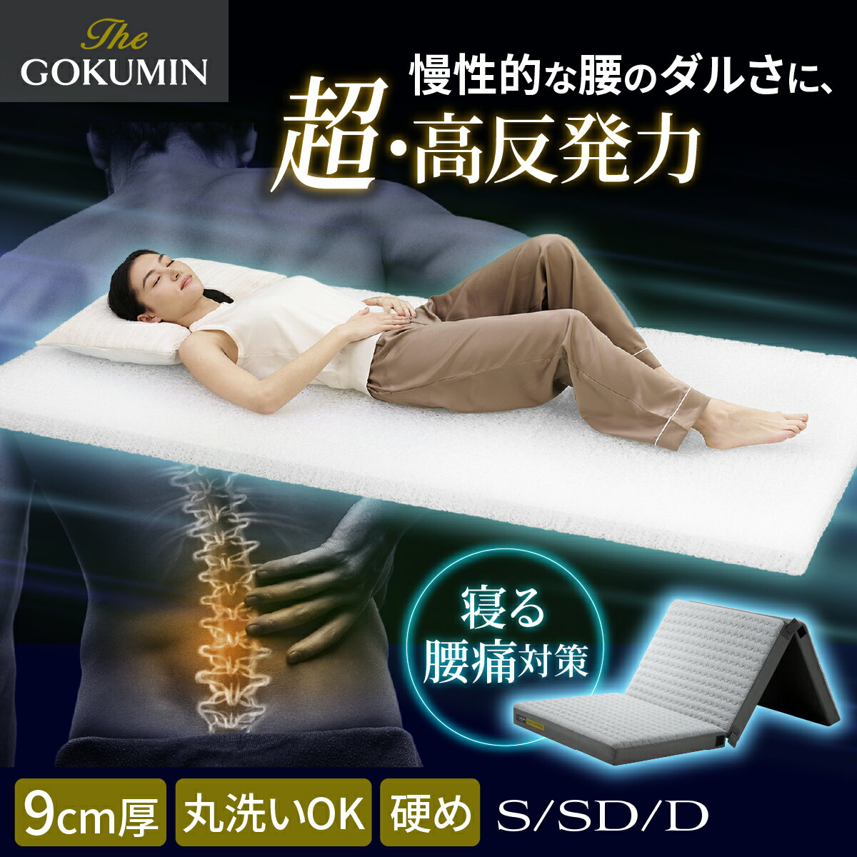 GOKUMIN 高反発 マットレス 超かため 高反発マットレス ファイバー素材 二層構造 選べる硬さ 高密度65D 55D 洗える 丸洗い 洗濯可能硬め かため 体圧分散 姿勢維持 三分割 折り畳み 厚さ5cm 抗菌 清潔 へたりにくい ゴムバンド付き 高級ニットカバー ダブル ベッドマットレス。