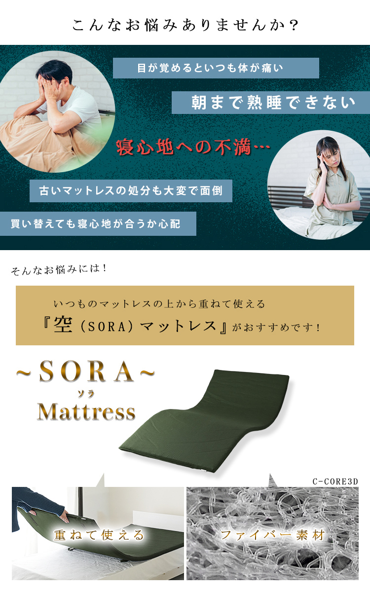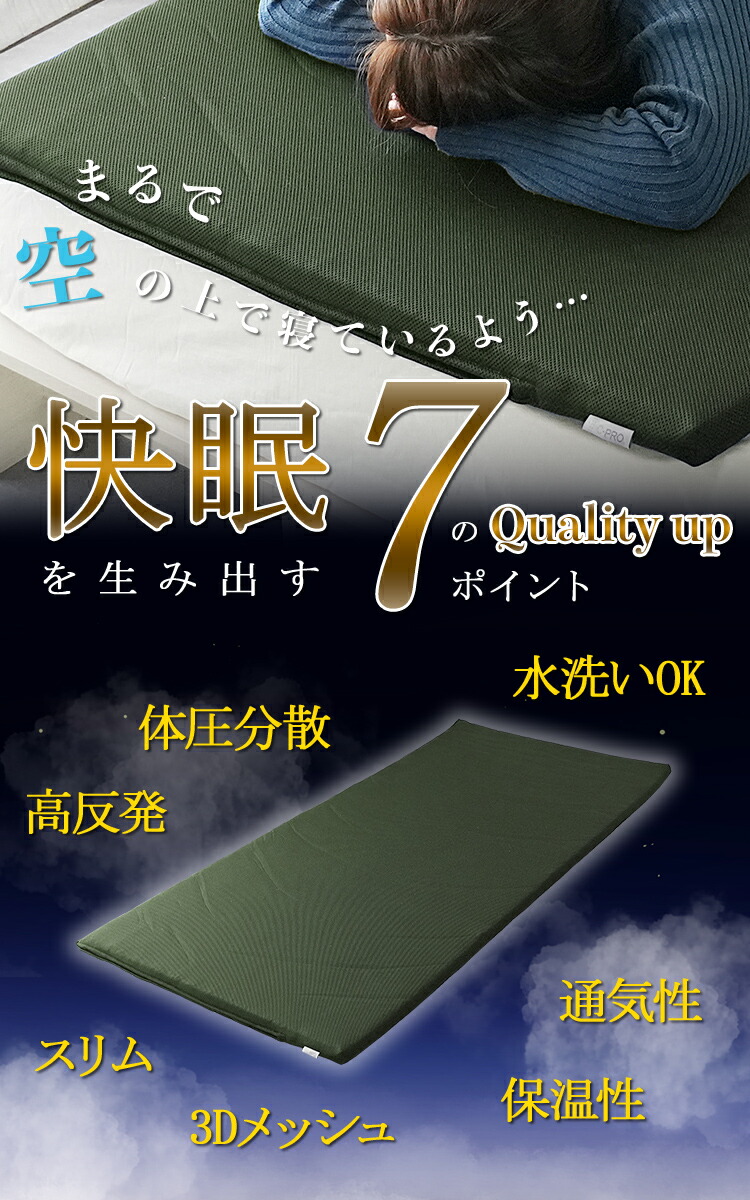 洗えるファイバーマットレス トッパー シングル ファイバー マットレス アーミーグリーン 高反発 体圧分散 寝心地改善 空 SORA :ルームクリエイト - 通販 - Yahoo!ショッピング。