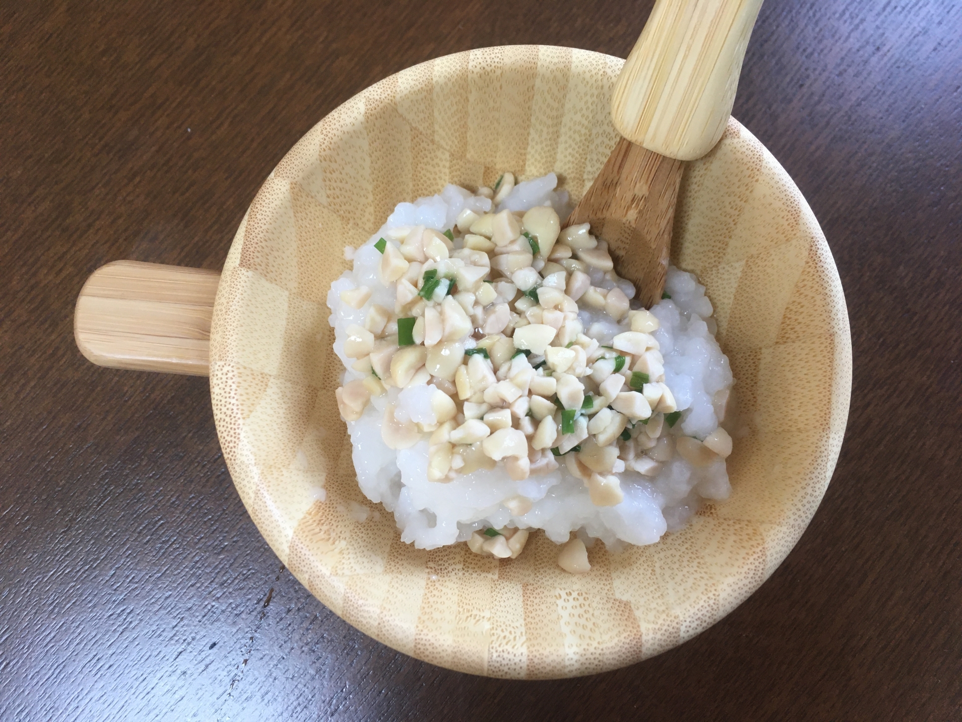離乳食中期の前期 7カ月頃~ 『根菜と納豆のシンプルおかゆ』。
