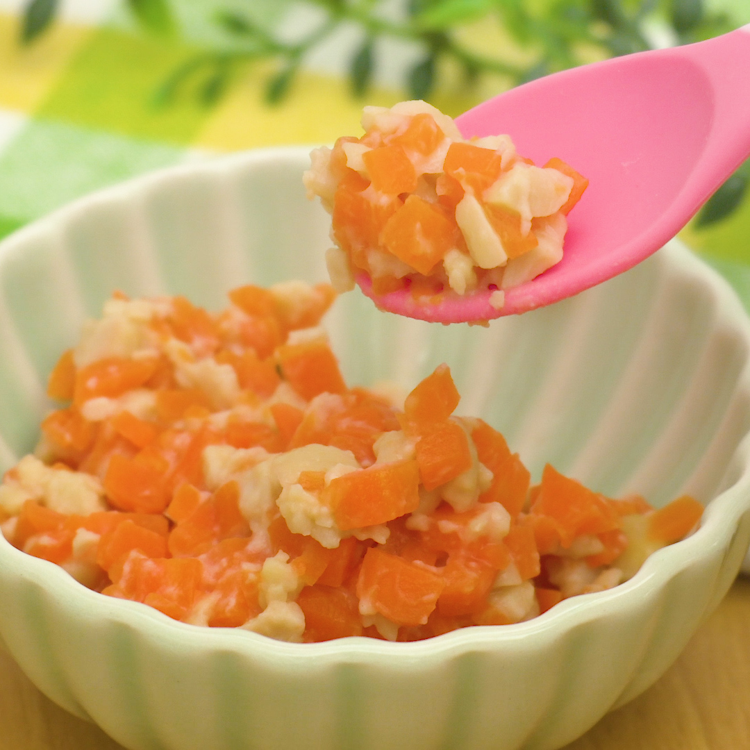 離乳食「中期」レシピ~納豆人参のおかゆ~一般財団法人 日本educe食育総合研究所。