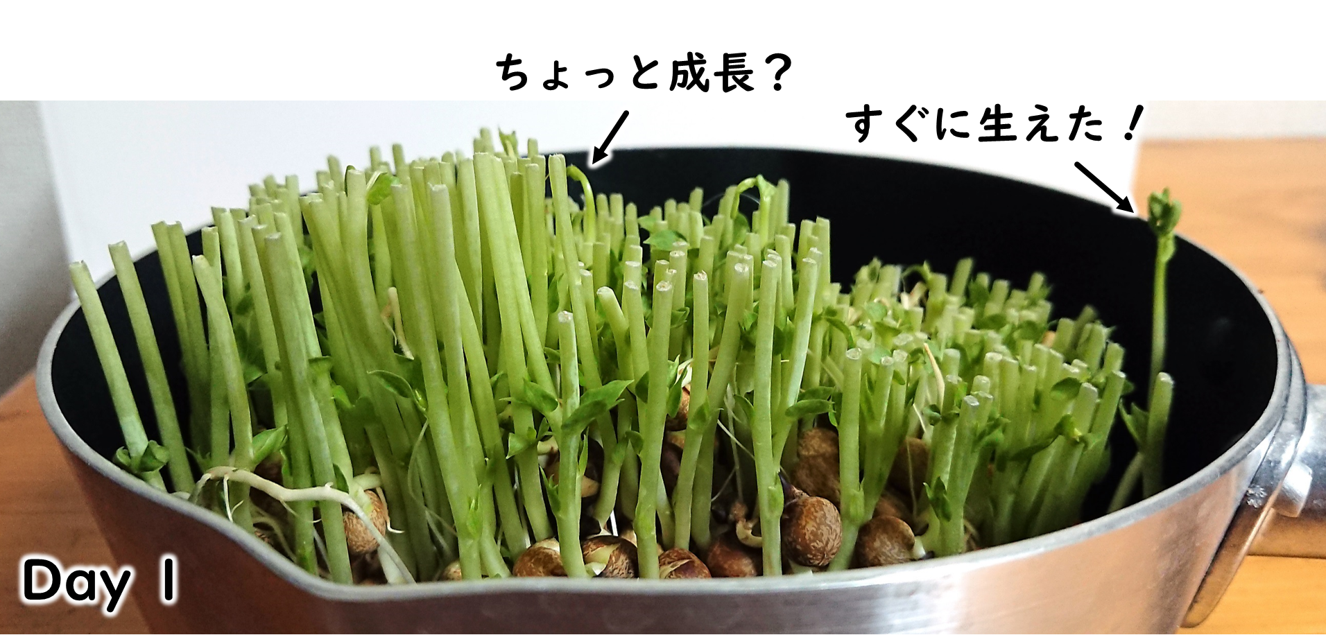 豆苗 豆苗を種から育ててみよう!〜種蒔きから収穫までの観察記〜 - アタマの中は花畑。