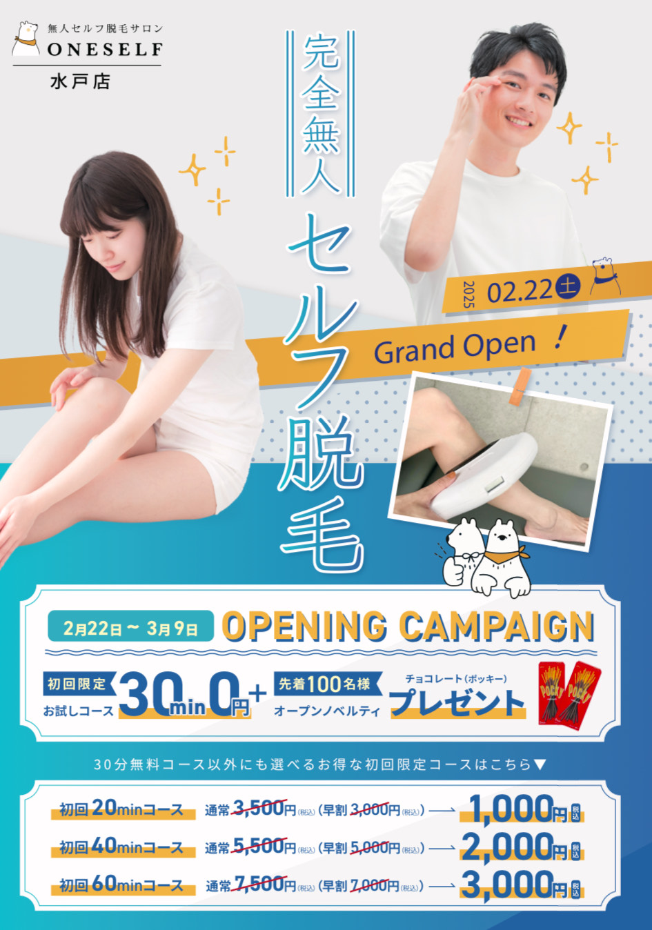 チラシご紹介『無人セルフ脱毛サロンONESELF 水戸店』さま -新着情報あるくぞ地域密着型ポスティングサービス茨城県水戸市・笠間市・那珂市・ひたちなか市。