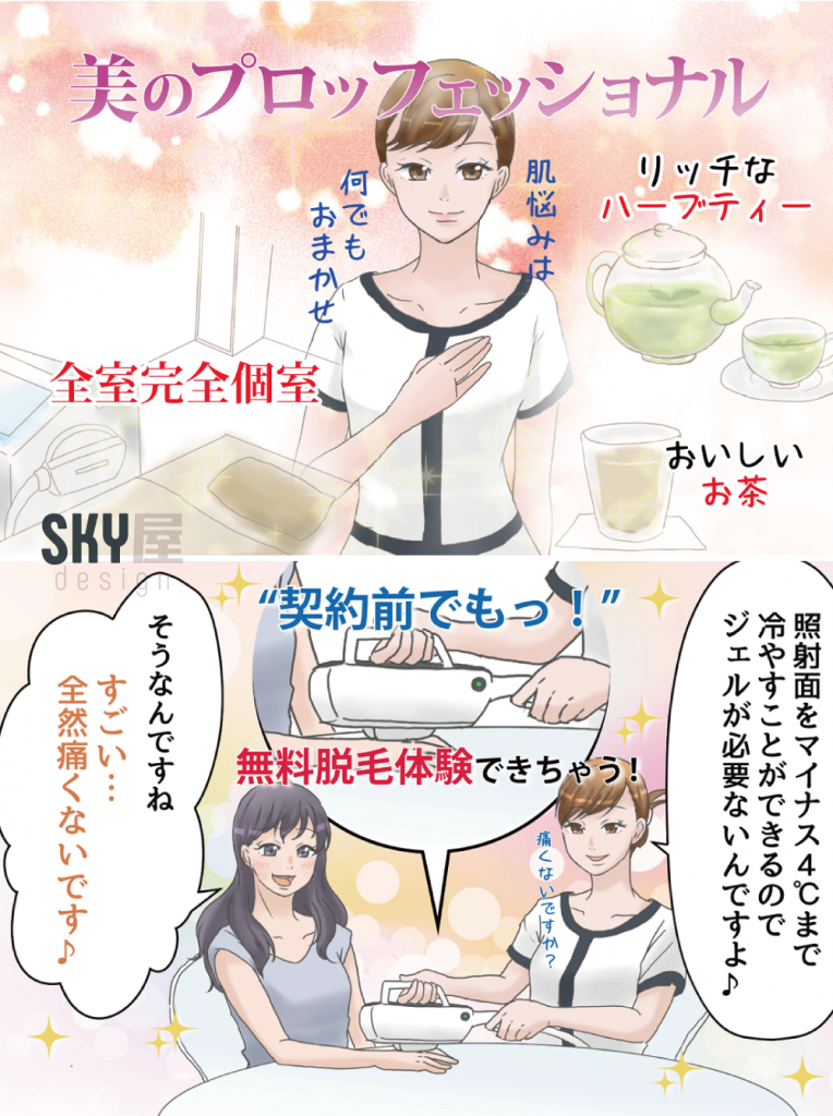 脱毛サロン 毛の悩みマンガ制作 – SKY屋-design。