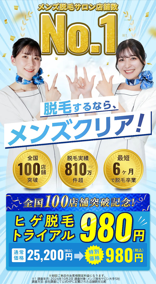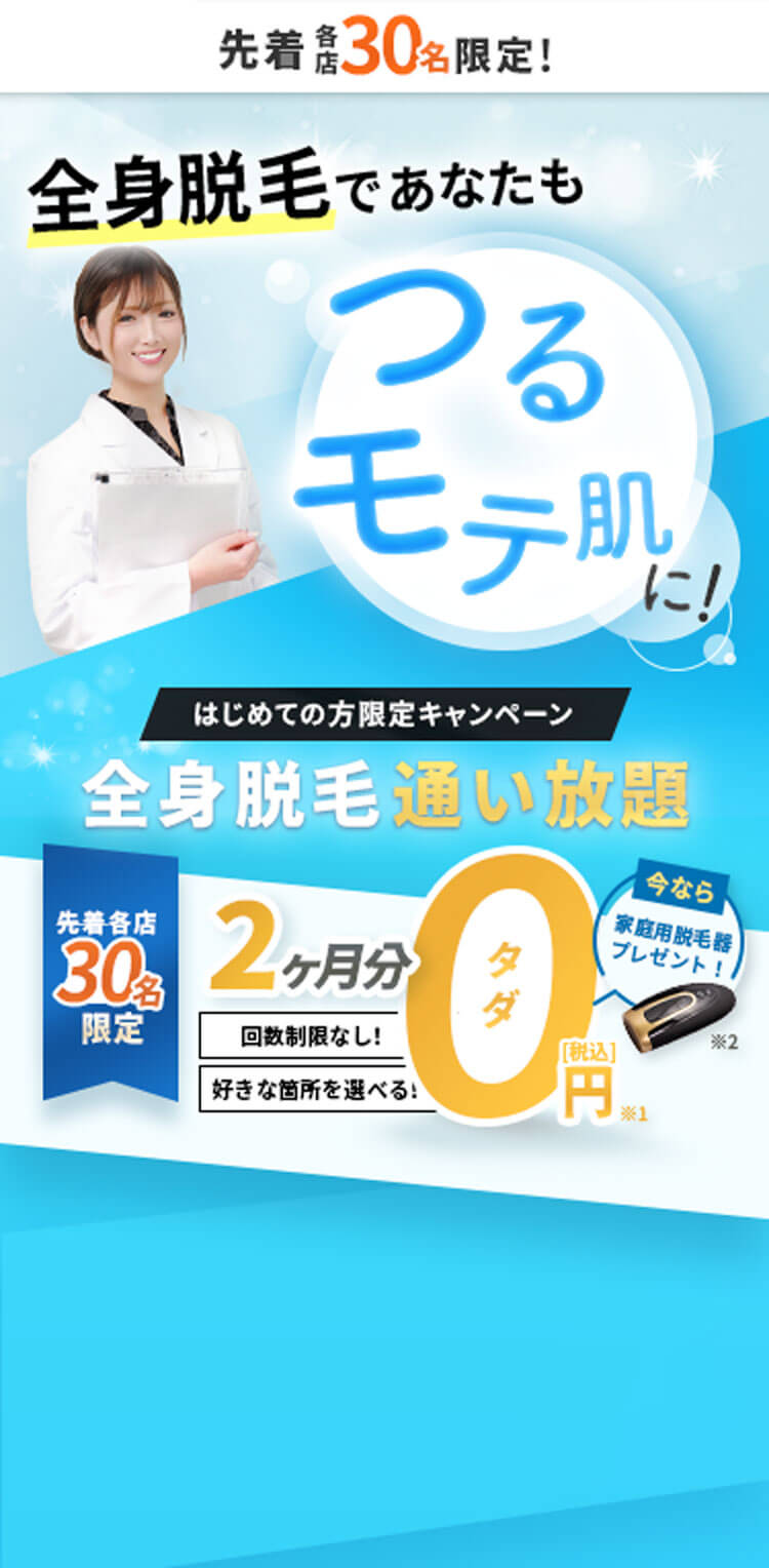 はじめての方限定! 全身脱毛通い放題が2ヶ月無料!メンズクリア。
