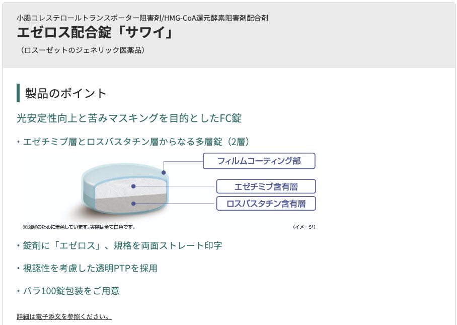 エゼロス配合錠「サワイ」 ロスーゼットのジェネリック医薬品 新製品情報沢井製薬。