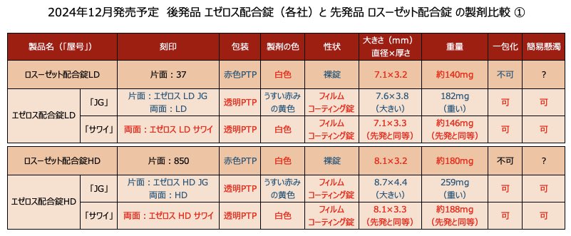 ぺんぎん薬剤師 on X: "深夜にこっそり 🤭 2024年12月に薬価収載 発売予定の後発品 エゼロス配合錠とその先発品 ロスーゼット配合錠のデータを比較してみました。とりあえず作ったのでデザインやミスはごめんなさい。詳細は電子添文やIFを確認してください。間違いあれば。