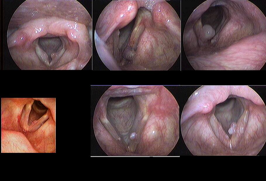 音声外科で扱う疾患 代表的な声帯の疾患 静止画像。