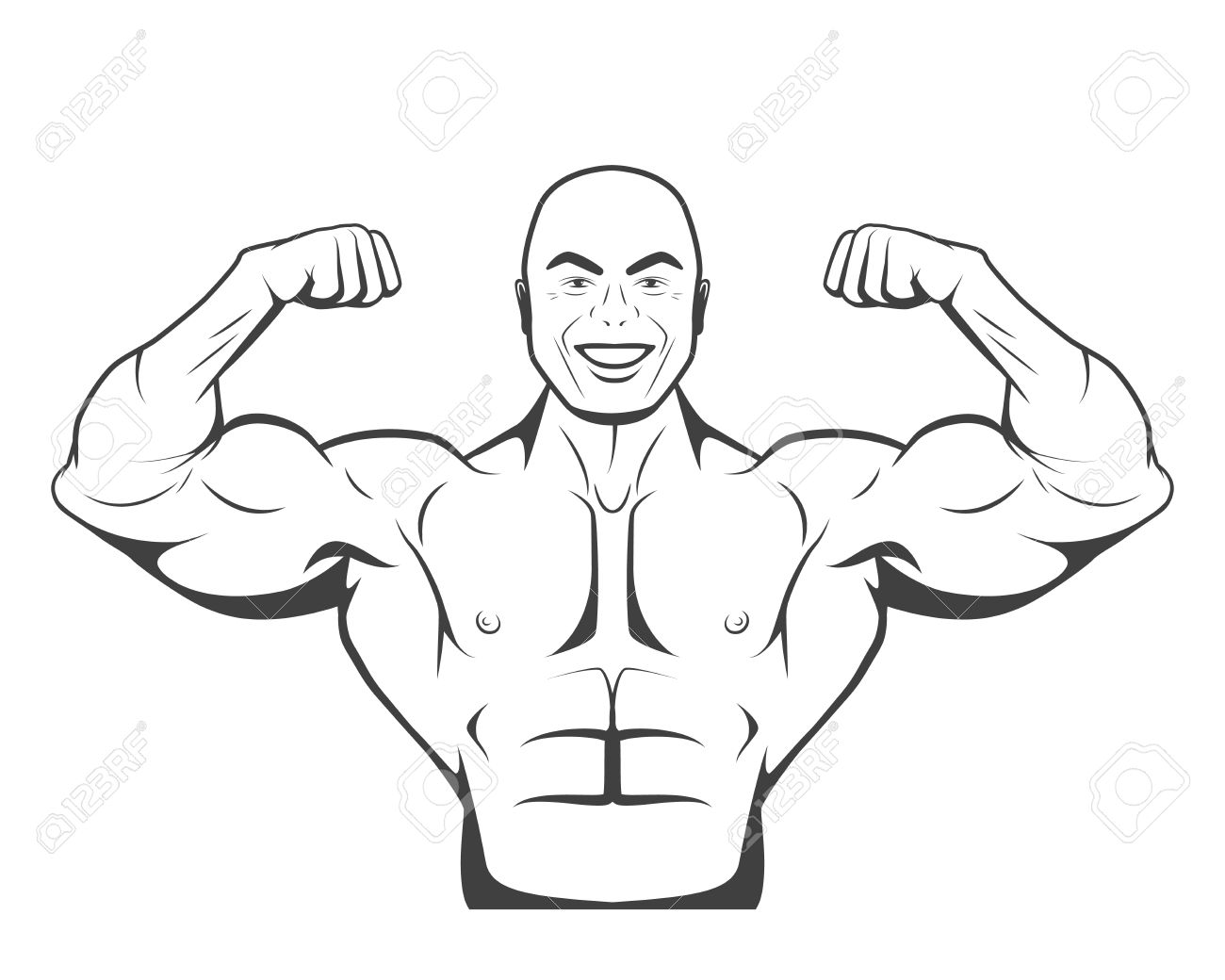強力なボディービルダー男完璧な腹筋、肩、上腕二頭筋、上腕三頭筋と胸の筋肉を誇示します。モノクロのベクター イラストです。のイラスト素材・ベクターImage 41765890。