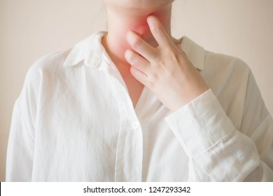 赤みを帯びた発疹で首の痒みを掻く若い女性。皮膚のかゆみの原因には、虫刺し、皮膚炎、食品・薬物アレルギー、乾燥肌などがある。医療のコンセプト。スペースをコピーします。接写。写真素材1141989089Shutterstock。