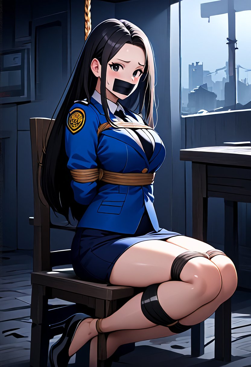 アヒル隊長 on X: "婦警椅子拘束一日一モモコ光戦隊マスクマンAIイラスト https:t.co rUPPKxKelJ"X。
